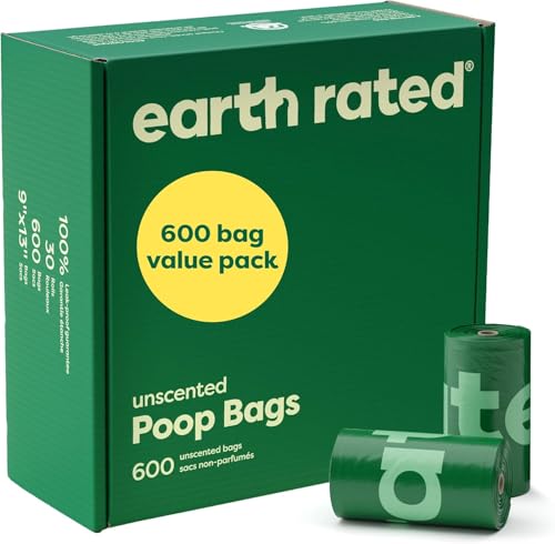 Earth Rated (A Canadian Company), Dog Poop Bags Value Pack, Leak-Proof and Extra-Thick Pet Waste Bag for Big and Small Dogs, Refill Rolls, Unscented, 600 Count