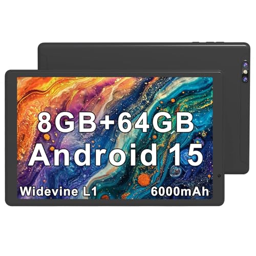 Tibuta Android 15 Tablet 10.1 Inch | 8GB RAM 64GB Storage | Quad-Core, 6000mAh, HD IPS Screen | 5MP+8MP Cameras | Wi-Fi, Bluetooth | w/Protective Case