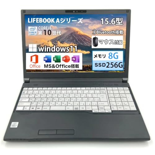 【整備済み品】富士通 ノートパソコン LIFEBOOK Aシリーズ/第10世代 Core i5/Webカメラ内蔵/ノートPC/15.6インチ/Windows11搭載/MS&Office 2019/メモリ8GB/SSD 256GB/WIFI/Bluetooth/DVDマルチ/テンキー搭載/マウス付属 (メモリ8GB/SSD256GB)
