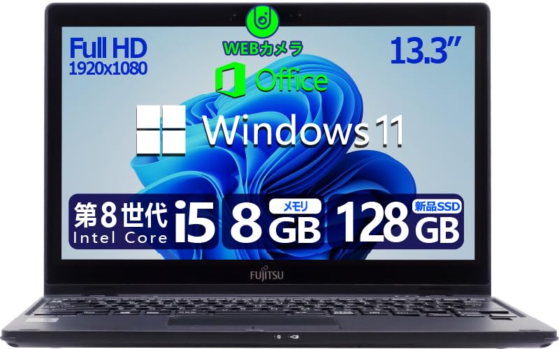 【整備済み品】 【Amazon.co.jp限定】極軽極薄FMV LIFEBOOK U939 ■13.3型FHD(1920x1080) - Win11搭載 - 第8世代Core i5-8365U - 8GBメモリ - SSD 128GB - Webカメラ - Type-C - HDMI - Office搭載
