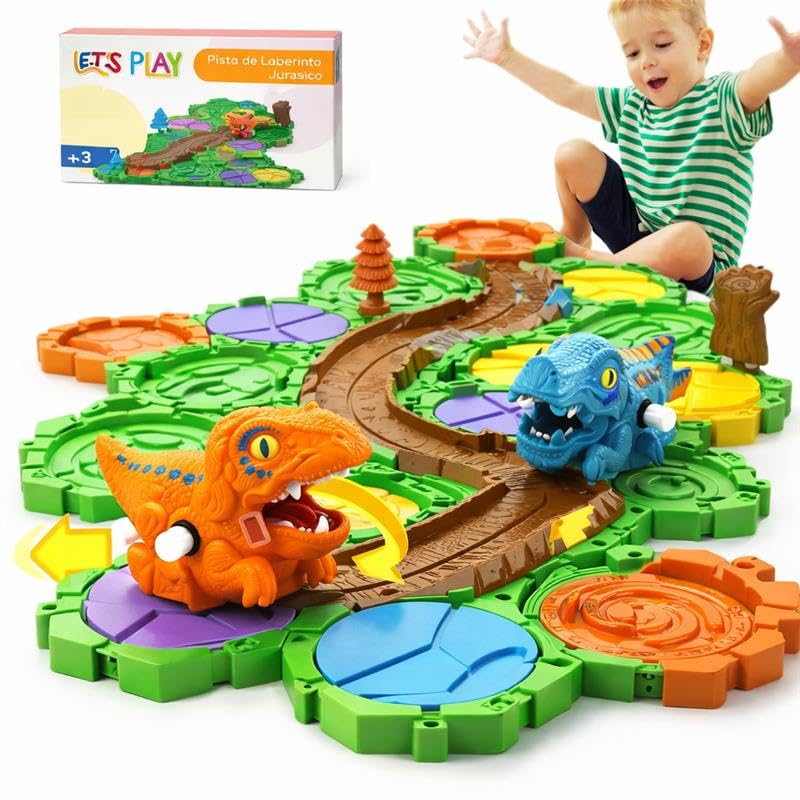 L LET'S PLAY Pista Laberinto de Dinosaurios para Niños | Juego de Mesa Armable Jurásico con 33 Piezas de Diferentes Tamaños | Juguete de contrucción Edad Recomendada 3 años en adelante