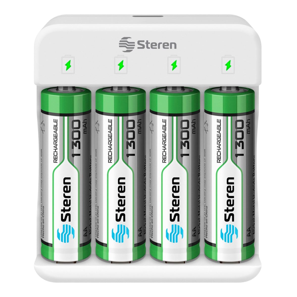STEREN Cargador Inteligente de Pilas “AA” y “AAA”. Incluye 4 Pilas AA