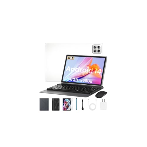Tablet, Tablets Android 14 de 10.1", 8GB RAM 256GB ROM 1TB Expandible, Octa-core 2.0GHz, 1280x800 IPS HD, Tableta con Cámara Dual de 2MP + 8MP, 6000 mAh Batería, 2026 Tablet con Lapiz, Teclado, Ratón