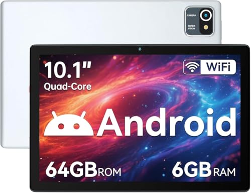 Hakaug Tablet 10 Inch Android OS Quad-Core 6GB RAM 64GB ROM 5000 mAh Battery1280x800 Touchscreen Tablet-PC (Silver)
