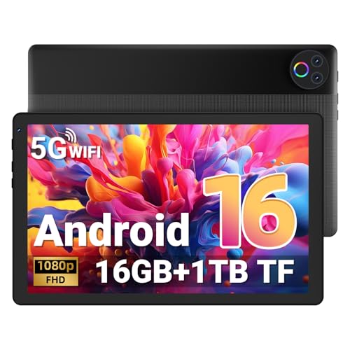 Gleeso Tablet|Android 16 Tablet 10 Inch|16GB RAM 1TB TF Android Tablets with Face Unlock|Widevine L1|BT 5.4/5G WiFi|5MP Dual Camera, OTG Tablet PC - Black