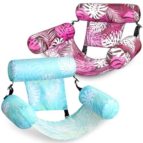 SLOOSH Inflatable Pool Floats Adult,2 Packs Floating Lounge Chairs,Blow up Pool Noodles for Adult Heavy Duty,Floating Chair for Party Summer Water Beach Lake Fun,Tropical Leaves-Cyan,Pink