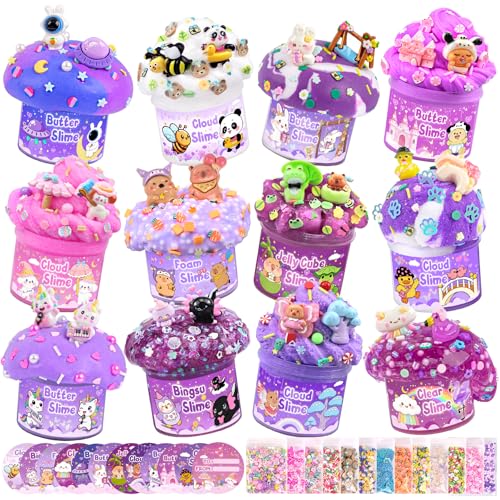 12 Pack Slimes, Purple Slime for Kids, Butter Cloud Slime kit for Girls Ages 8-12, Toys for Girls and Boys, Birthday Party Favors for Kids Goodie Bag Easter Basket Stuffers