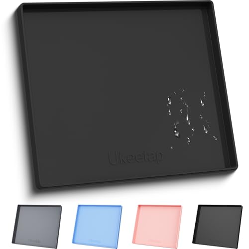 ukeetap Extra Thick Silicone Mat Waterproof with Raised Edge 22" x 19", Under Sink Mat for Kitchen & Bathroom, Kitchen Cabinet Liner, Multi-Purpose for Storage & Protection, Black