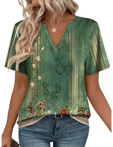 Zeagoo Summer Tops for Women Loose Fitted T Shirts Floral Blouses Dressy Casual Work Clothing Floral Green XL