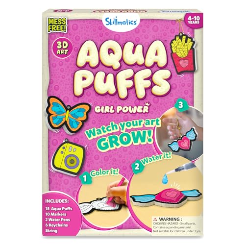 Skillmatics Aqua Puffs – 3D Art Kit, Girl Power, Mess-Free Paint by Number Craft for Kids, DIY Color & Inflate Activity, Travel Toys & Creative Gifts for Girls Ages 4, 5, 6, 7, 8, 9, 10