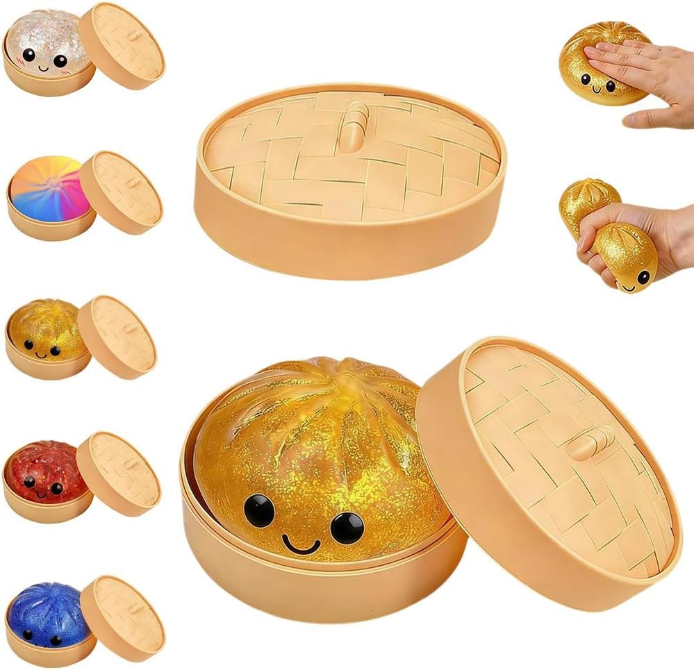 Glitter Dumpling Squishy, 2026 Upgrade Dumpling Squishy Mystery Box, Colorful Dumplings Stress Balls Fidget Sensory Toy, Stocking Stuffers with Food Steamer Stretchy Desk Toys